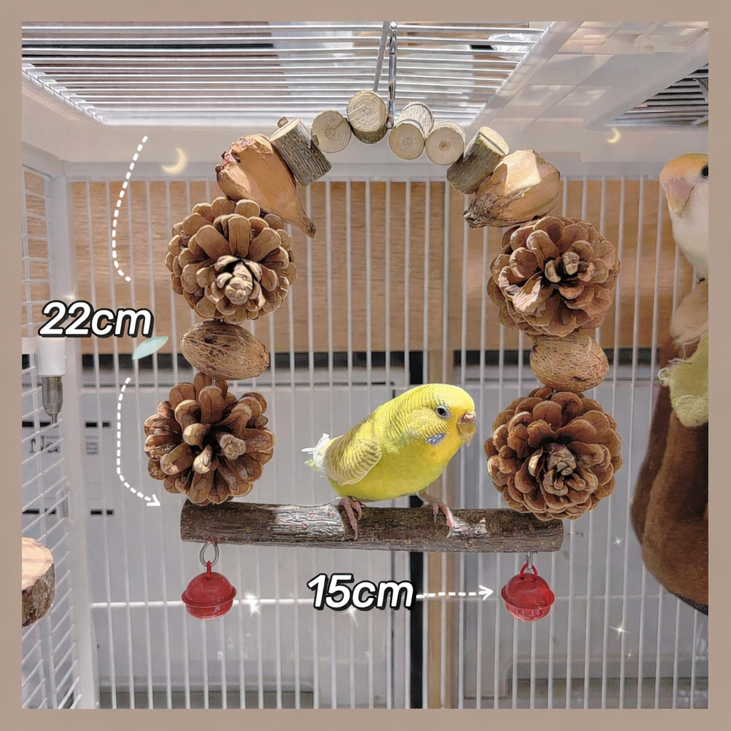 Most bird swings are just... places to sit. But your bird is a curious forager. This archway is a game-changer because it turns "hanging out" into an active adventure. It combines a comfy natural branch perch with a buffet of shreddable treasures.